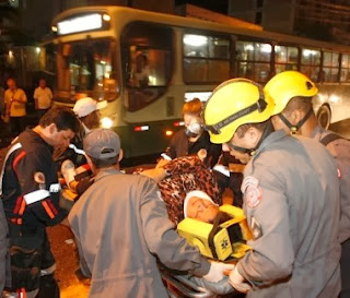 Ônibus desgovernado bate em outro coletivo da linha 4370 (Duquesa II/Belo Horizonte), em um fusca e deixa 21 pessoas feridas.