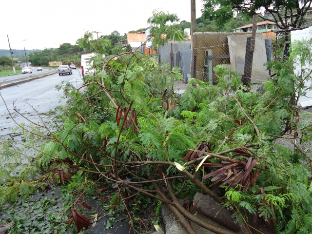 A forte chuva que atingiu Belo Horizonte e região metropolitana na madrugada desta quinta-feira (15) causou pontos de alagamento e a queda de uma árvore em Santa Luzia.