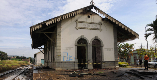 A antiga Estação Ferroviária de Santa Luzia, na Grande BH, foi atingida por um incêndio na madrugada desta quinta-feira. Ainda não se sabe o que provocou o fogo. Segundo a superintendente do Patrimônio de Santa Luzia, Maria Goretti Gabrich, o prédio, tombado pelo patrimônio municipal, abriga desde 2005 o Centro de Artesanato da cidade, onde artesãos expõe seus materiais, que são vendidos por um funcionário da prefeitura que fica no local. “Em 2010 foi refeita toda a parte elétrica da estação, não sabemos o que provocou o incêndio. Por volta das 3h30, vizinhos viram fumaça saindo pelo telhado e acionaram os bombeiros, que apagaram o fogo e isolaram a área”, explica.